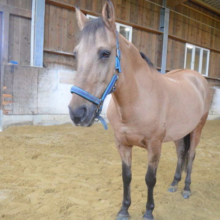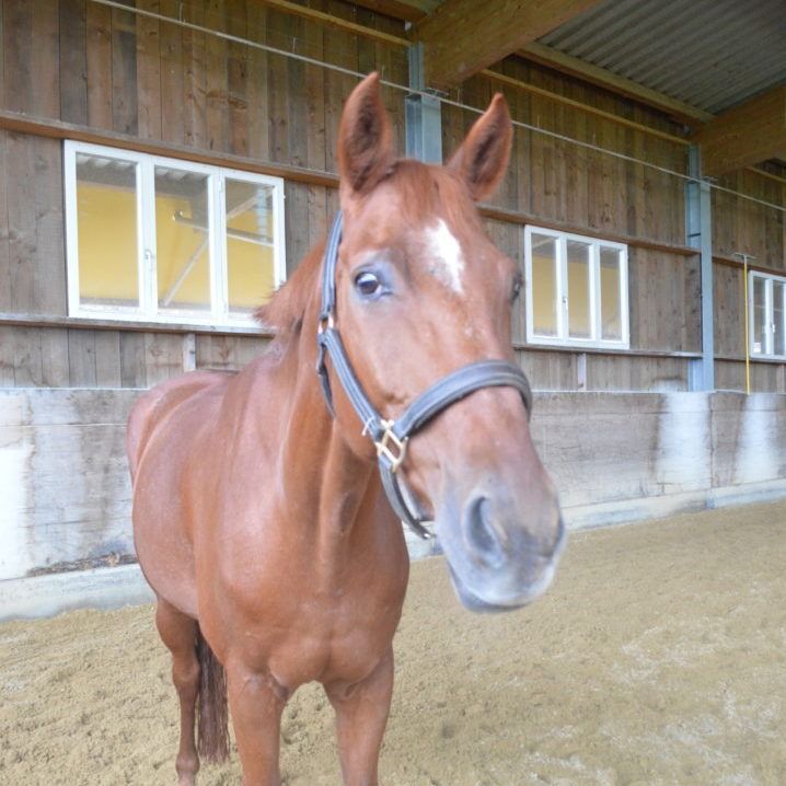 Er läuft mit mir im Sport mit bisherigen Platzierungen bis 110 cm und geht auch mit den Reitschülern auf kleine Turniere.